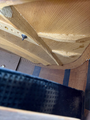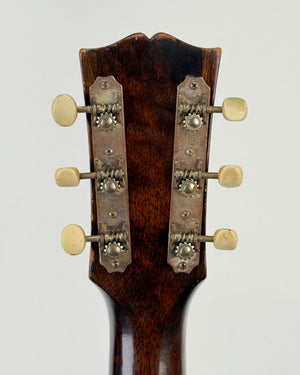 This small body acoustic is free of breaks or cracks and still retains original finish. The original tuners hold strong. Acoustically, the tone is loud and woody.