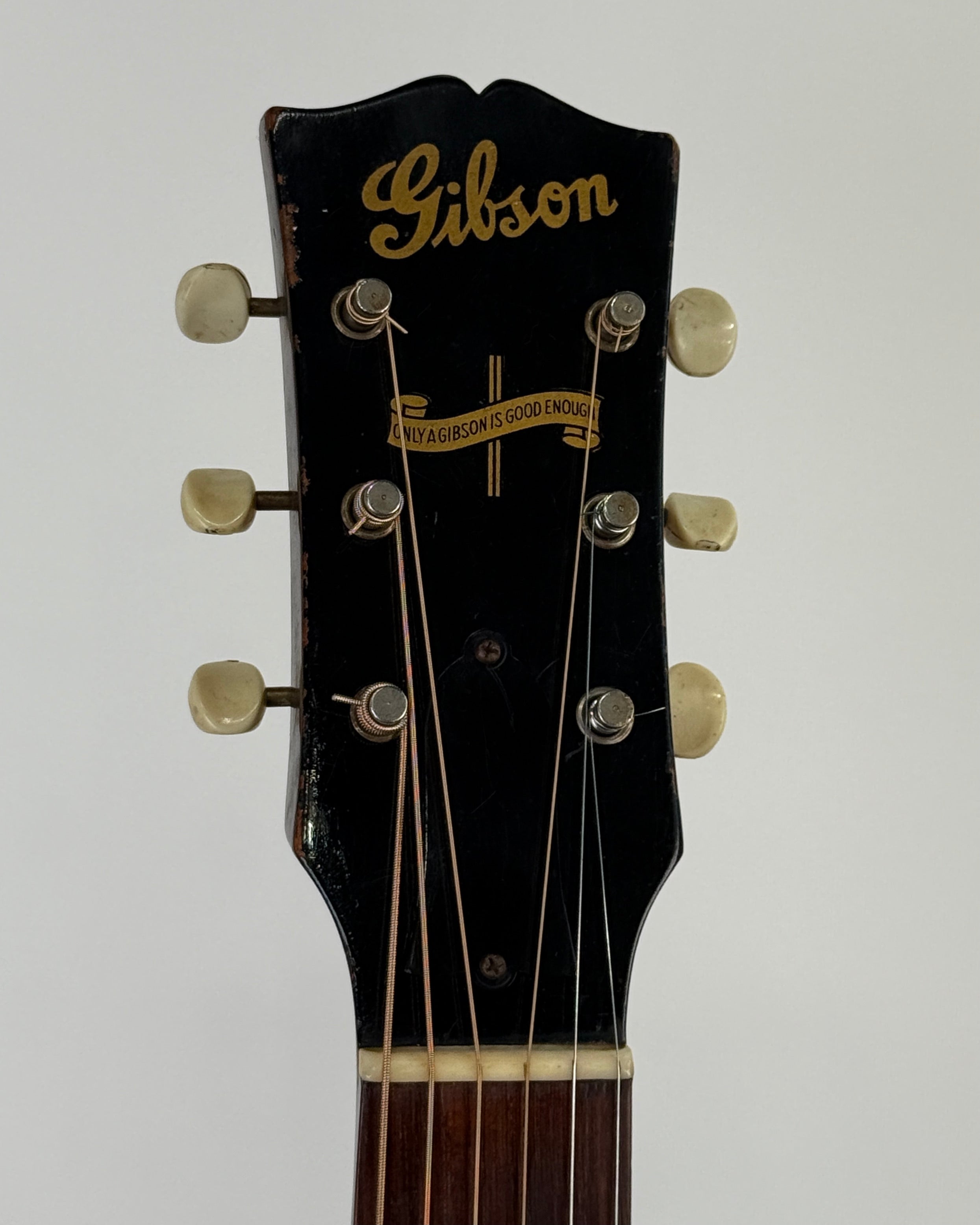 First time for sale is this original Banner Logo Gibson from 1945. It will need its first service from your favorite luthier including a neck reset (action is high at 12th fret and there is separation at heel). The guitar is on consignment, sold as-is for restoration.