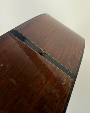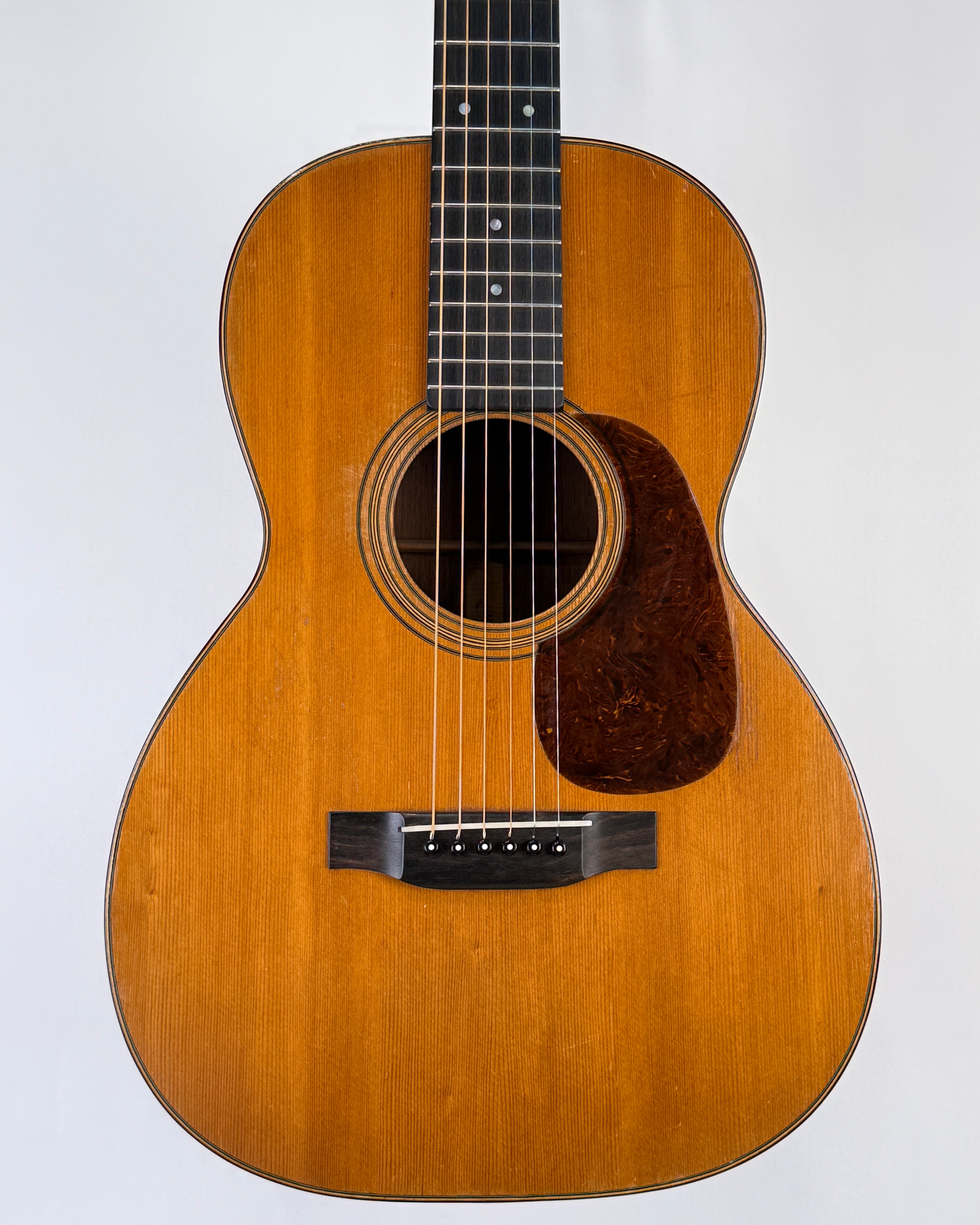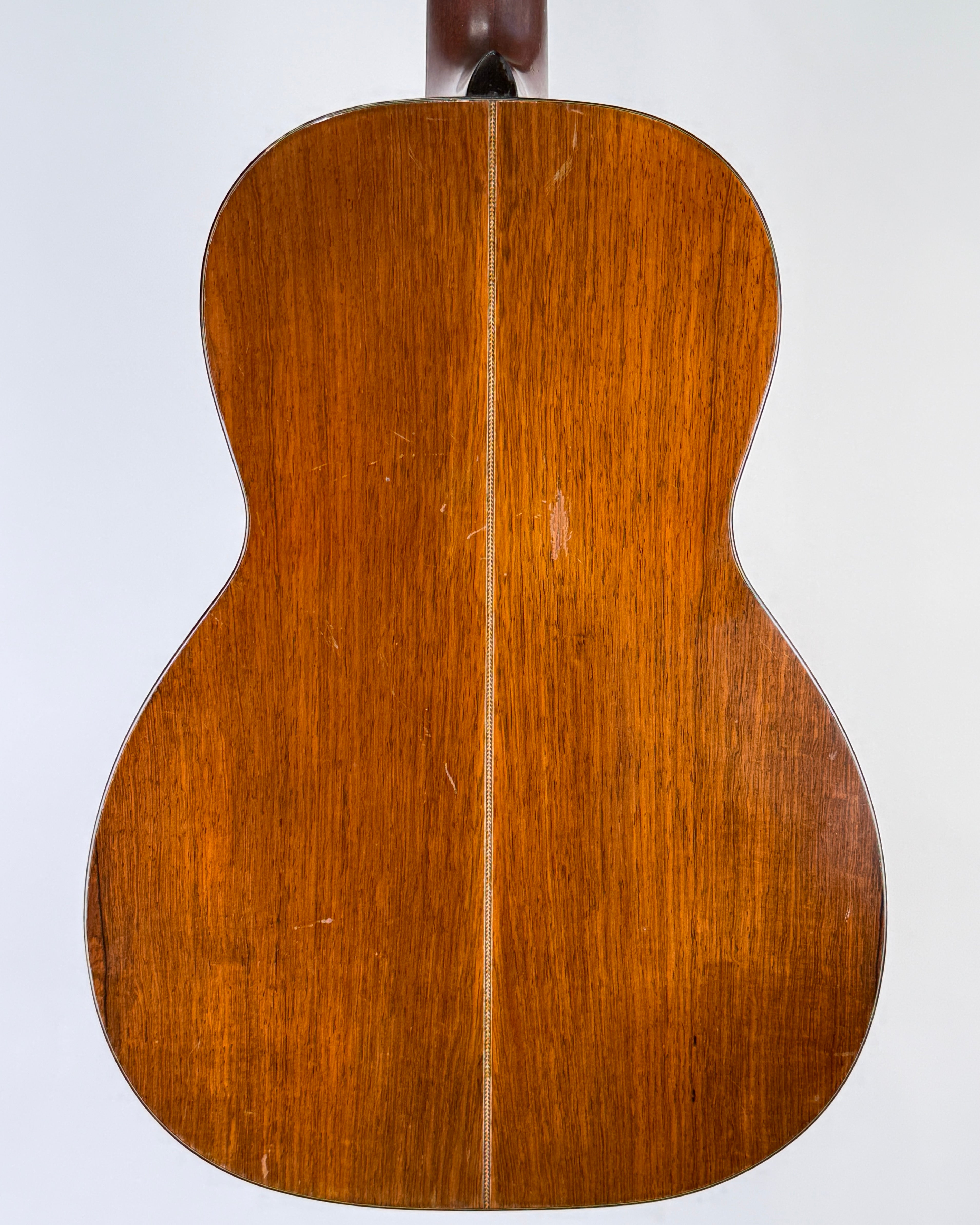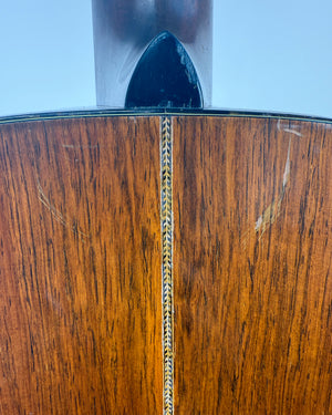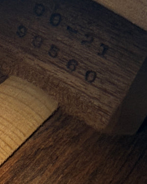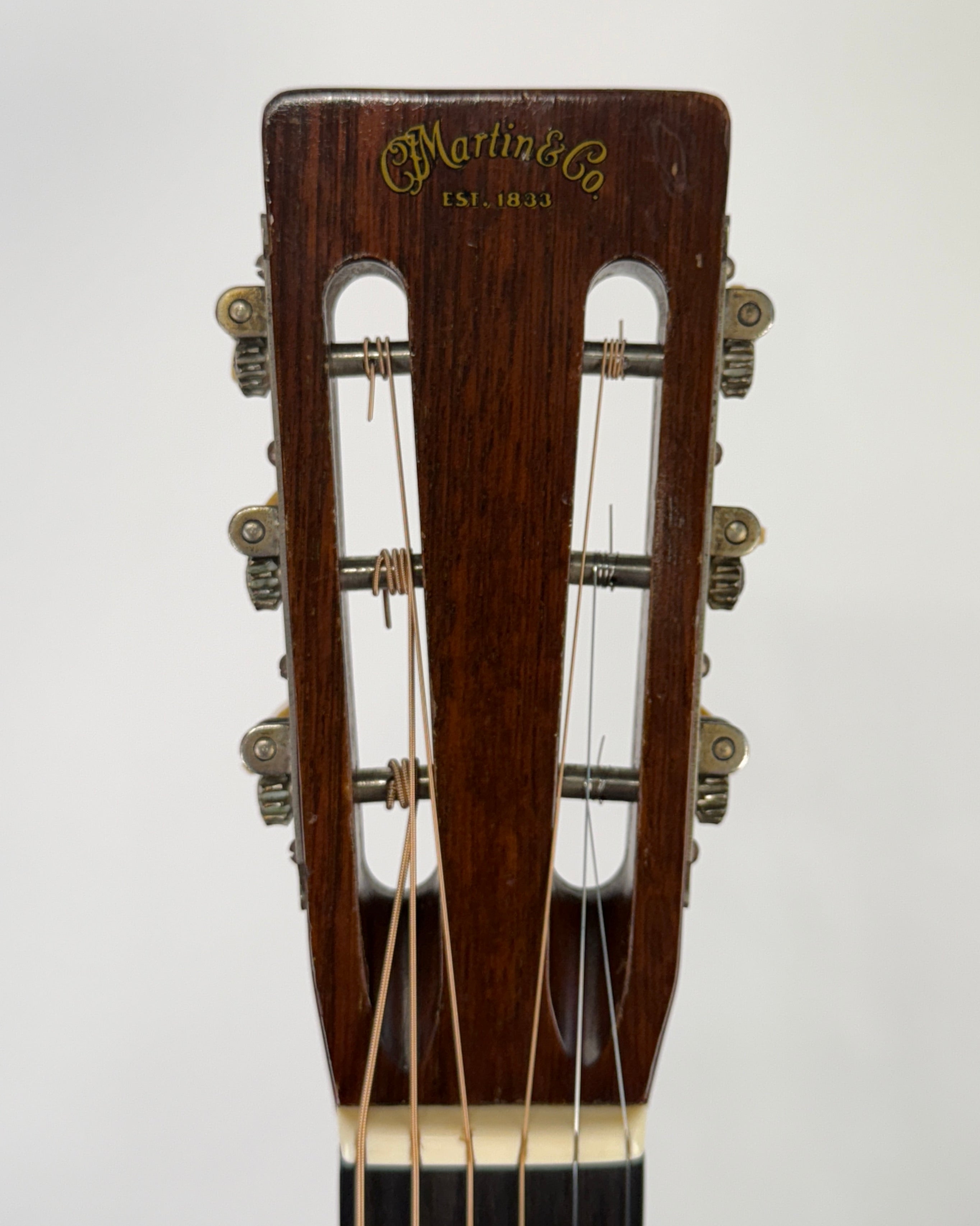 Well maintained martin OO-21 with beautiful Brazilian rosewood back and sides. This small bodied acoustic rings out loud and woody. It features original natural finish, offset with an ebony fretboard. The slotted headstock has a repaired crack as shown in photo.