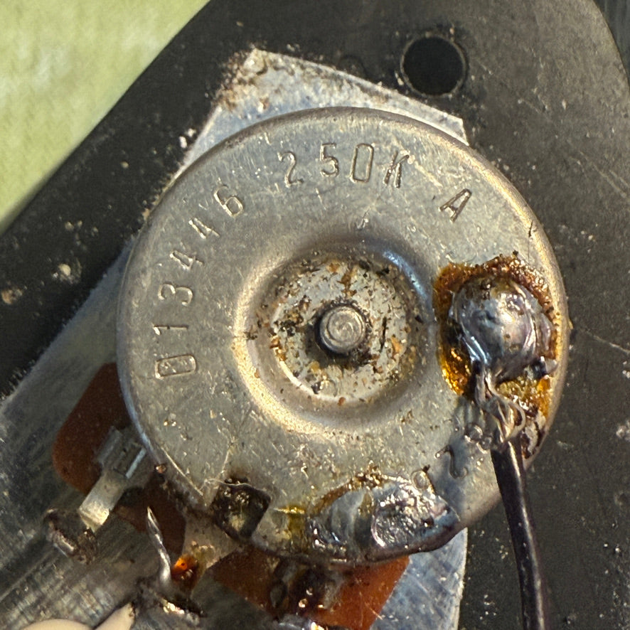 Fender's iconic electric guitar in original black over white finish. Comfortable weight at 8lb 2 oz. Replaced volume pot and fresh frets. This guitar is ready for studio and stage.